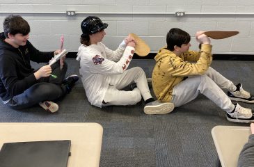 Students in Mrs. Birnell’s 8th grade play the “props” game to work on creativity and problem solving.